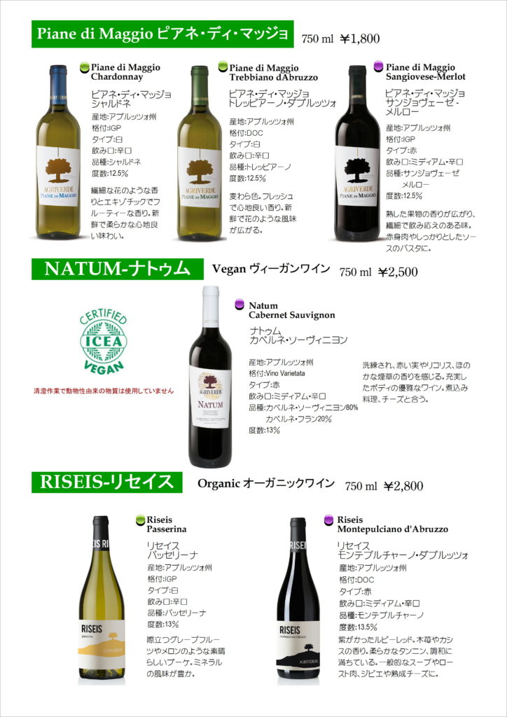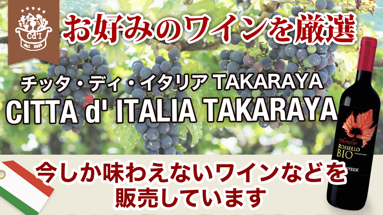 イタリア全土から厳選した直輸入ワインのほか、日本酒、焼酎、世界のお酒、オリーブオイル、チーズやパスタ等の食材を販売しています。