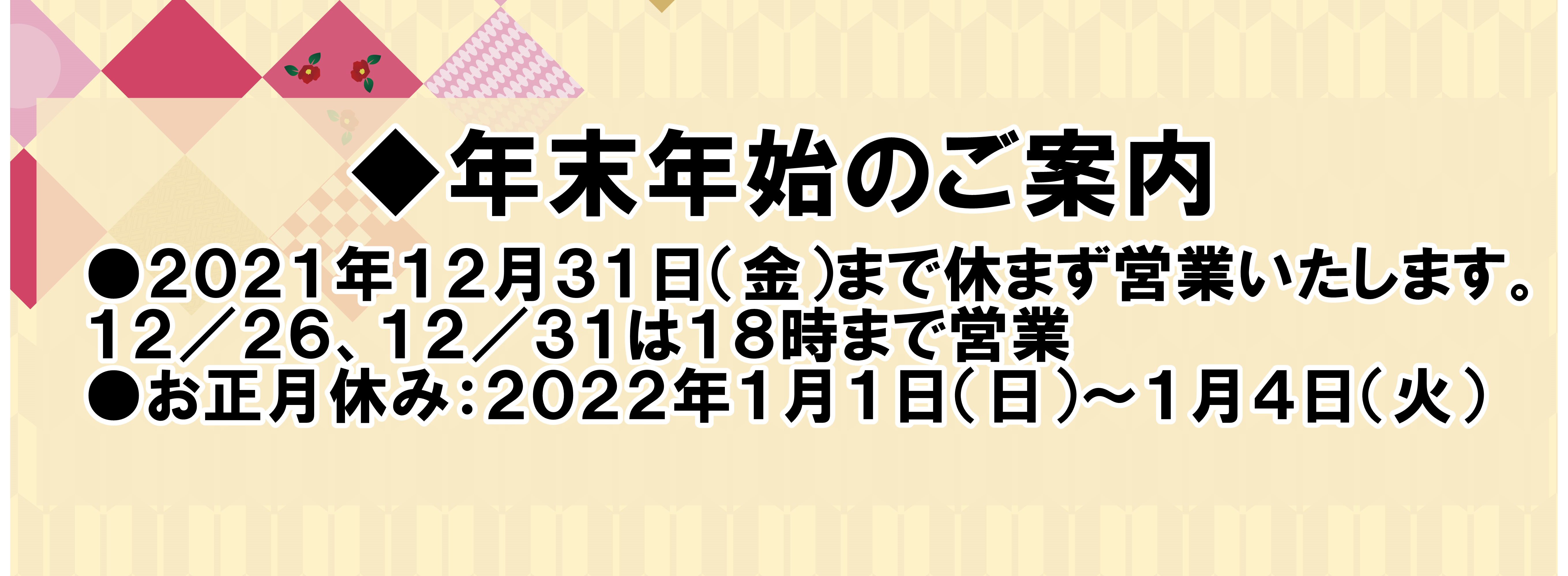 ●お正月休み:2022年1月1日(日)~1月4日(火)