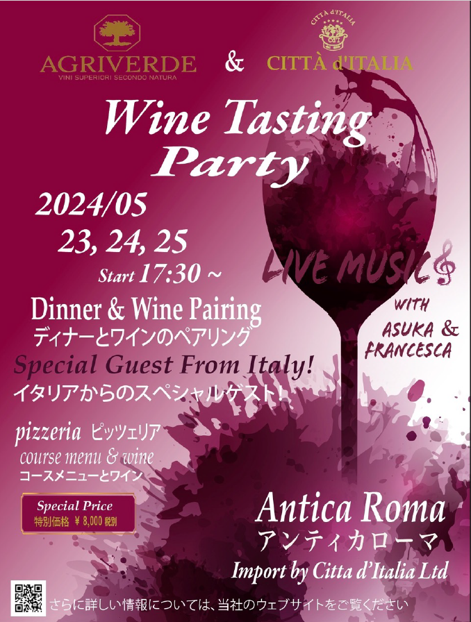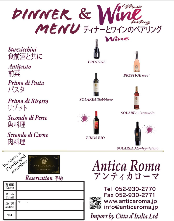 この度、同社ゼネラルマネージャーのサヴェリーナ・リッロ氏Saverina Rilloが来日。来日イベントとして、リストランテ・アンティカローマにてペアリングコースメニューをご用意いたします。